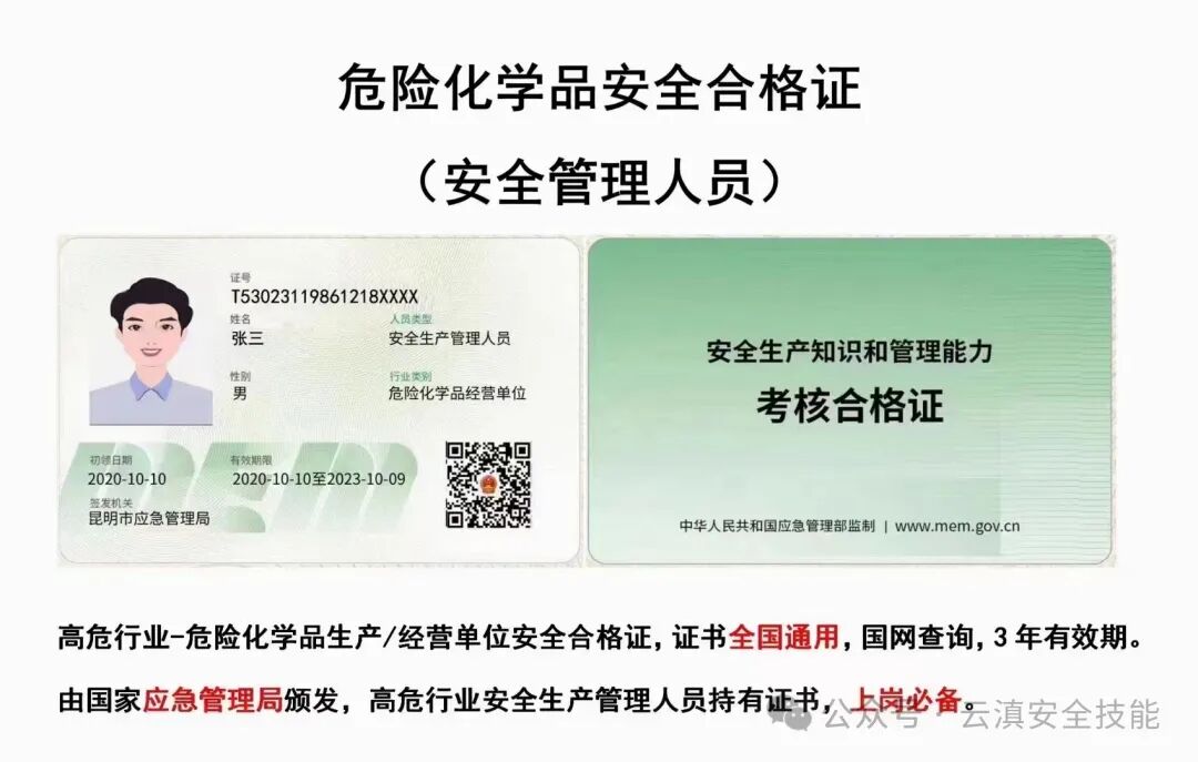 適用于危險(xiǎn)化學(xué)品生產(chǎn)企業(yè)和經(jīng)營(yíng)單位,由昆明市應(yīng)急管理局頒發(fā),證書全稱:危險(xiǎn)化學(xué)品經(jīng)營(yíng)單位(主要負(fù)責(zé)人)和危險(xiǎn)化學(xué)品生產(chǎn)單位(主要負(fù)責(zé)人)